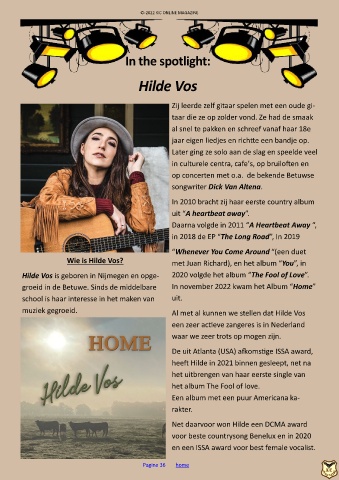 Hilde Vos is geboren in Nijmegen en opge- 2020 volgde het album “The Fool of Love” .