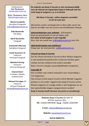 kitty@keepitcountry.eu Het Keep it Country online magazine verschijnt