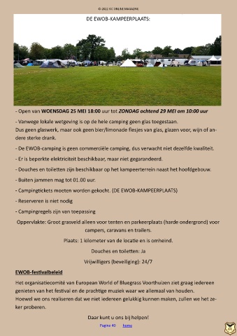 - Campingtickets moeten worden gekocht. (DE EWOB-KAMPEERPLAATS)