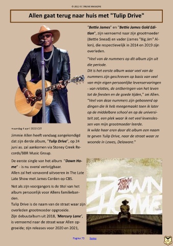Jimmie Allen heeft vandaag aangekondigd te geven Tulip Drive, naar de straat waar ze