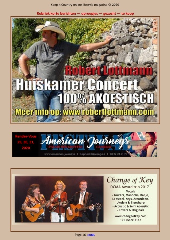 Keep it Country online lifestyle magazine ©-2020 Rubriek korte berichten — oproepjes — gezocht — te koop Rendez-Vous 29, 30, 31, 2020 Page 16 HOME