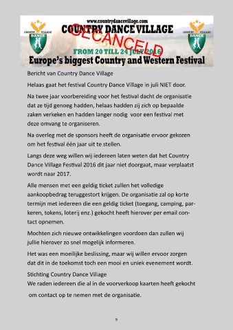 Helaas gaat het festival Country Dance Village in juli NIET door.